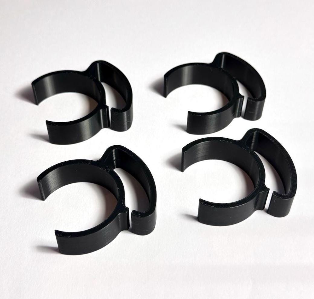 Custom-made cable clips designed to fit the exact diameter of a tube, pole or stand leg. Whether you’re organizing cables on a DJ booth, synthesizer rack, mic stand, desk, sim rig or table legs, these clips keep your setup neat and professional!